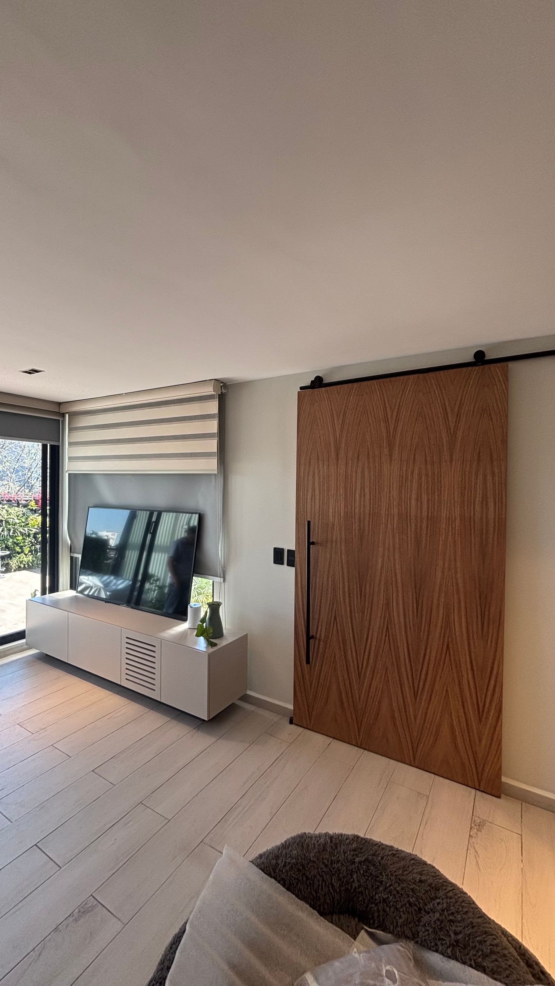 En el interior, se seleccionó una paleta de materiales cálidos y sobrios: madera natural, tonos neutros en muros y mobiliario, y elementos que enfatizan la continuidad y armonía entre ambos ambientes. El resultado es un espacio elegante, acogedor y perfectamente integrado con su entorno exterior.